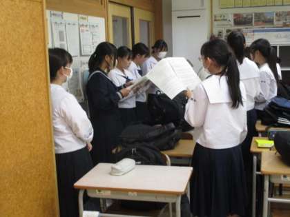 今日から10月21日(土)に行われる合唱コンクールの放課後練習が始まりました。どのクラスもはじめにパート練習を中心に行っていました。写真は29Hの様子です。