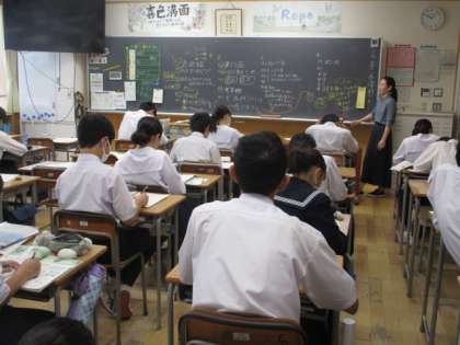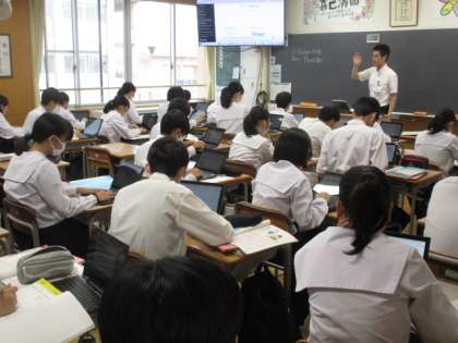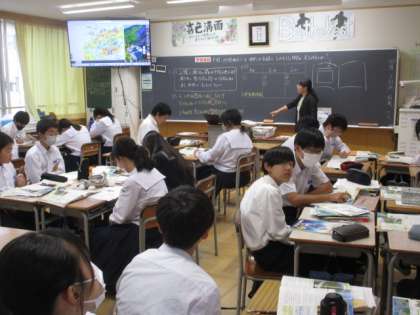 2限の2年生の授業の様子です。写真は上から21H社会、22H英語、23H理科です。