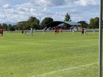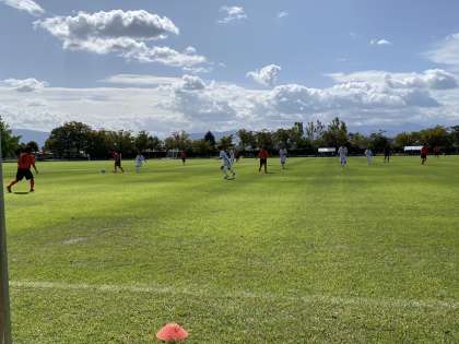 富山南総合公園で開催されているサッカー競技に、本校サッカー部(富山市1位)が出場しています。