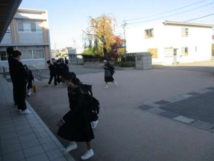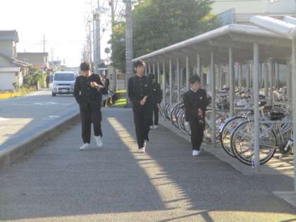 今朝の登校時は気持ちのよい秋晴れになりました。今日は全学年、合唱コンクールのリハーサルを行います。本日の下校完了時間は、17:30です。