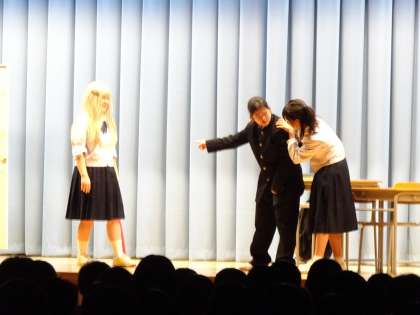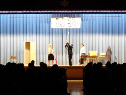 最後は演劇部による演劇です。題目は「彼女によろしく」でした。とても熱のこもった演技に感動を与えました。