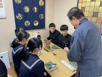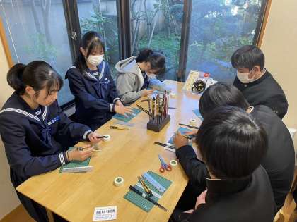 金箔屋さくだでは、箸に金箔を貼る体験をしています。