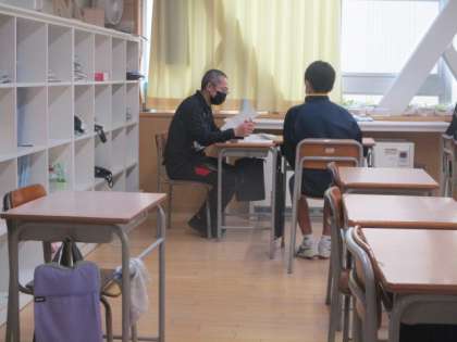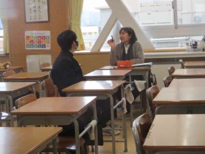 9日から始まった教育相談ですが、今日の放課後も各教室で担任の先生との面談が行われていました。写真は2年生の様子です。