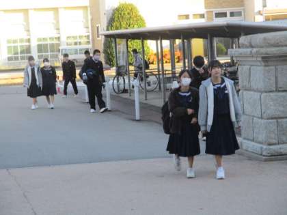 今朝の登校時は晴れになりました。今日は3年生の進路懇談会2日目です。本日の下校完了時間は16:30です。