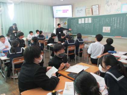 5限に14H、23H、37Hで道徳の公開授業を行いました。写真は14Hの様子です。集団の一員としての自分の役割や責任について考えました。