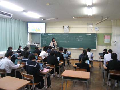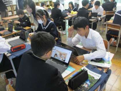 2限、17Hで英語の研究授業がありました。ペアで英語を話し、タブレットパソコンで聞き取った内容のイラストを動かします。みんな真剣に取り組んでいました。