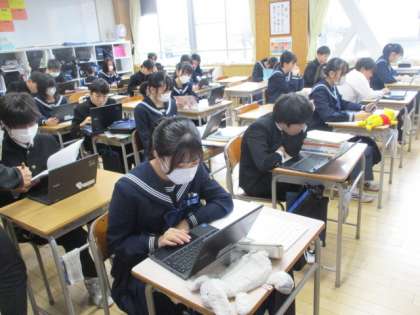 今日から3日間、朝の速星タイムの時間に人権作文コンクール入賞作品を読んで感想を書きます。今日の作品は、昨年度内閣総理大臣賞を受賞した「大きく息を吸い込む世界へ」でした。写真は29Hの様子です。