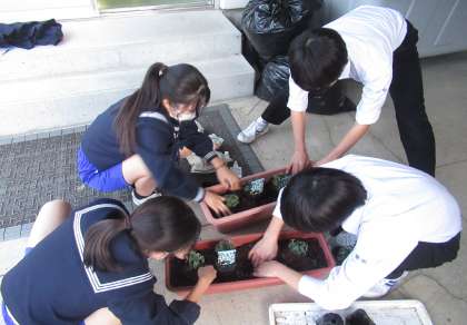 放課後、生徒会執行部でブルースターの苗を植えました。3年生の卒業式に間に合うように、今日から大切に育てていきます。