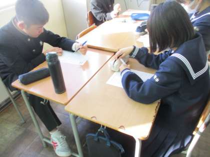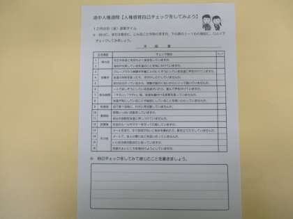 今日は「速中人権週間」最終日になりました。最後は人権感覚を自己チェックして振り返ります。自分だけでなく相手の人権をも大切にしていきたいですね。写真は14Hの様子です。