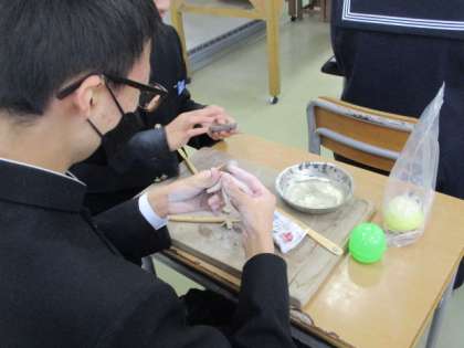 2限、28H美術の様子です。粘土で動物等、様々な形を制作しています。最後に焼いて仕上げます。