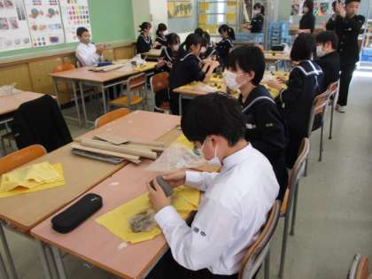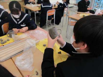 3限、14Hの美術の授業の様子です。粘土で焼き物を制作しています。マグカップを作る 生徒が多くいました。実際に使うのが、楽しみですね。