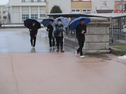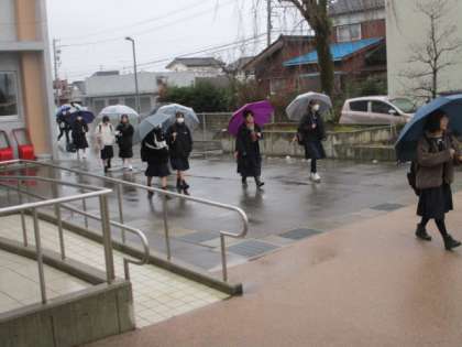 今朝の登校時は雨になりました。今日は保護者懇談会最終日です。本日の下校完了時間は15:00です。
