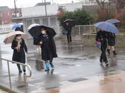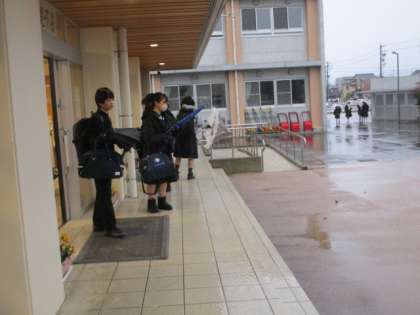今朝の登校時は雨が途中から雪に変わってきました。本日の下校完了時間は16:05です。