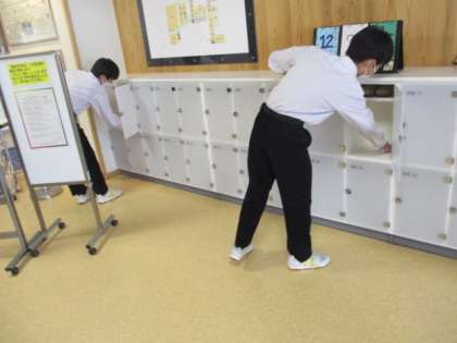 今日の清掃はいつもより10分長い時間をとって、大清掃を行いました。いつもより細かな部分にも気を配って清掃しました。