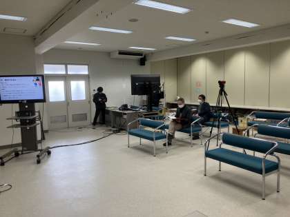 欠席者も多かったので、コンピュータ室から各教室にリモートを繋ぎ行いました。