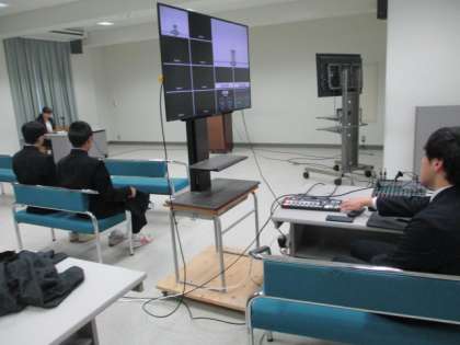 1限、リモート配信の形で受賞報告会を行いました。場所はコンピュータ室です。