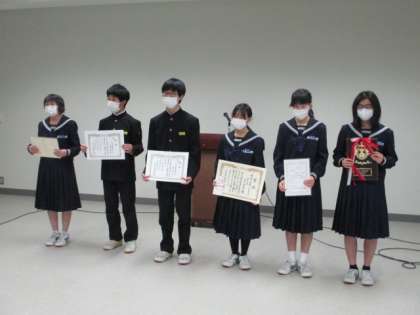 1限、リモート配信の形で受賞報告会を行いました。場所はコンピュータ室です。