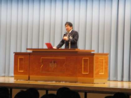 終業式は全校生徒が体育館に集まって行いました。校長先生の式辞では2学期を振り返りながら、志(夢・目標)を実するためにも「言葉」が重要であること等を話されました。