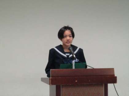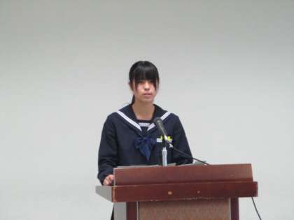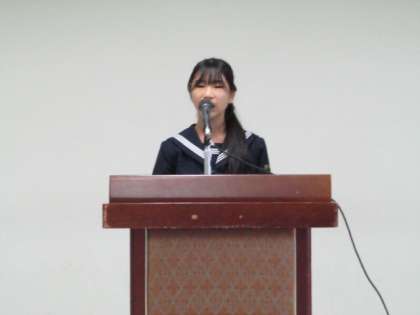 受賞報告会の後、各学年の代表者が意見発表を行いました。新たな年や学期に向けて挑戦したいことや目標を述べました。