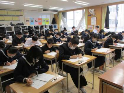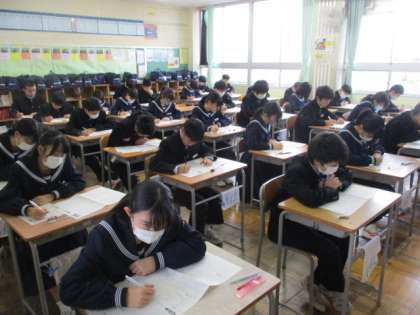 1限から5限まで1年生は冬休み明けテスト(確認テスト)、2年生はテキストテストを行いました。冬休み中の課題からの出題です。写真は2限の24Hと11Hの様子です。