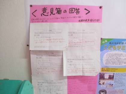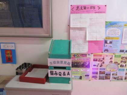 生徒会コーナーには現在、意見箱が設置されています。生徒の様々な意見に対する回答もあわせて掲示してあります。