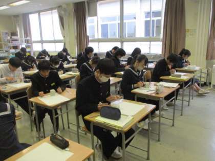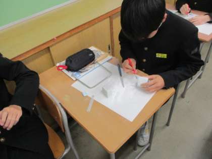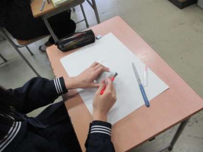 2限、37Hの美術の時間の様子です。石彫でペーパーウエイトを制作しています。これが3年生最後の作品制作になります。