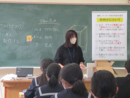 先生の説明をよく聴き、ペーパーウエイトを制作しています。