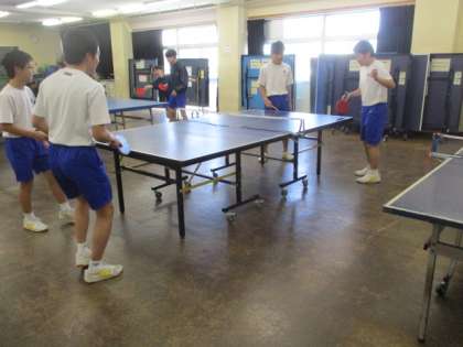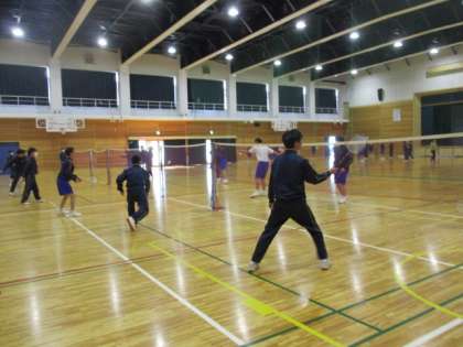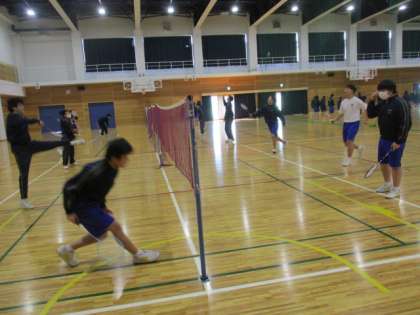 2限、33・34Hの体育の時間の様子です。バドミントンと卓球に分かれて取り組んでいます。寒さも感じず熱心に取り組んでいます。