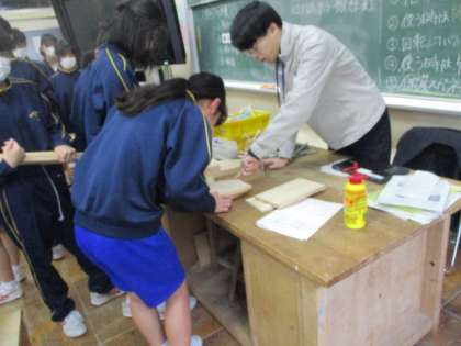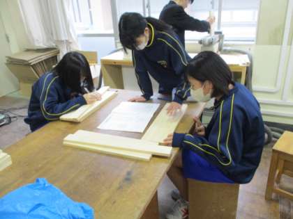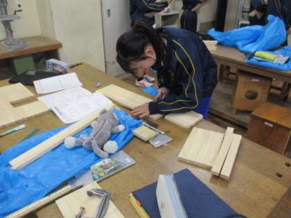 2限、16Hの技術の時間の様子です。徐々に木製ラックづくりが進んでいます。