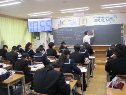 3限、3年生の授業の様子です。上から31・32H男子体育、31・32H女子体育、33H理科です。