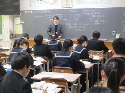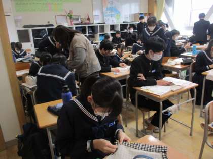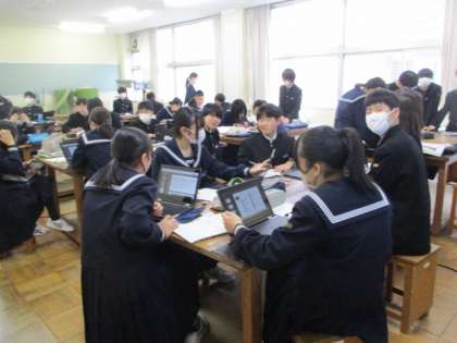 2年生3限の授業の様子です。写真は上から21H家庭科、22技術、23H数学です。