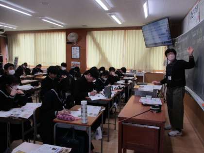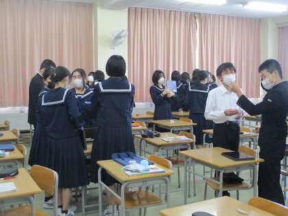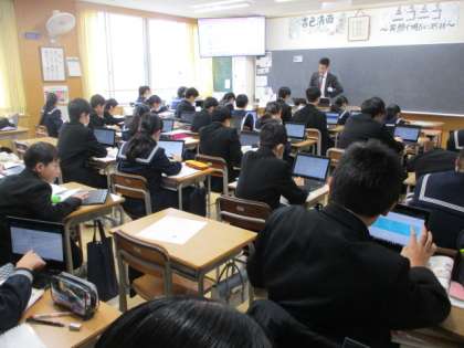 同じく、24H美術、25H英語、26H社会です。美術はタブレットで作品を鑑賞しながら、自分の意をは伝え合っています。