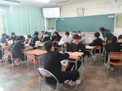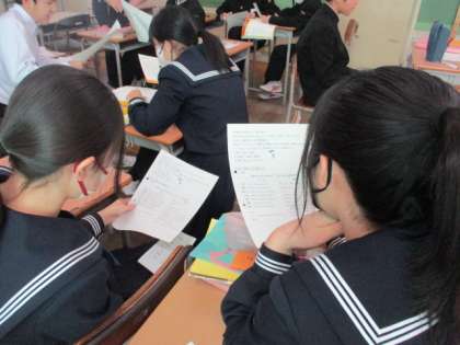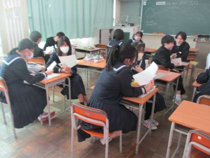 3限、17H少人数教室の様子です。ペアになって「My hero」に関するクイズを出し合っていました。