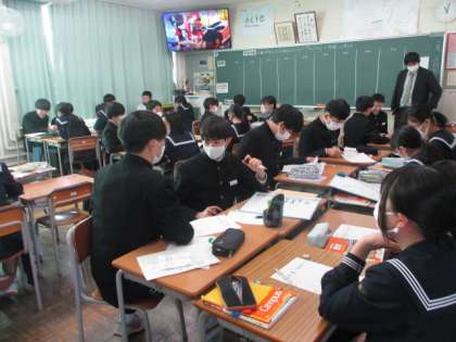 3限、16Hの様子です。「大航海時代はなぜ成功したのか」について、グループで漫画のキャラクターの役割を用いて考えました。
