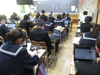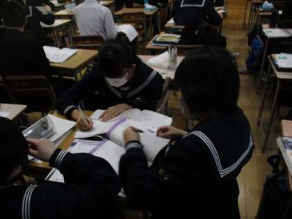 3限、2年生の授業の様子です。写真は21H数学、22H国語、23H国語です。