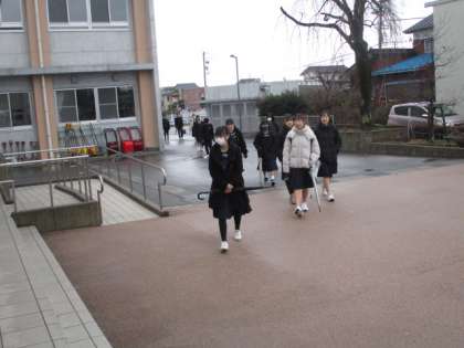 今朝の登校時は曇りになりました。3年生は午後から進路懇談会を行います。本日の下校完了時間は16:15です。