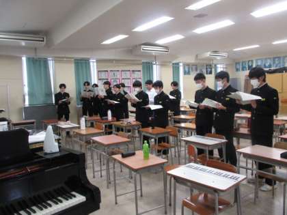 4限、35Hの様子です。卒業式に歌う「群青」を各パートに分かれて練習しています。