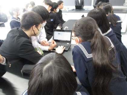 5限、21Hの理科でICT機器を用いた公開授業を行いました。日本海側と太平洋側の天気の違いを気象要素に基づいて考えます。授業では千葉県の大多喜中学校とパソコンを通して交流しながら学びました。