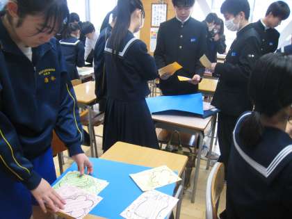 各クラスで募集したメッセージカードを、1,2年生の学年生徒会合同台紙にはりました。3年生への気持ちを込めてつくりました。