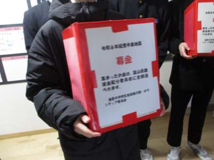 今朝の登校時は曇りになりました。玄関内ではボランティア委員会の生徒が能登半島地震の被災地への義援金を集めています。本日の下校完了時間は17:00です。