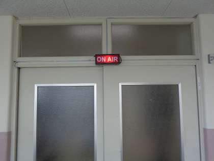 学校内スタジオの入り口に「ON AIR」のライトがつきました。