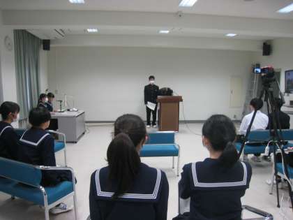明日の生徒会選挙に向けて、放課後、選挙立候補者、応援弁士、選挙管理委員会でリハーサルを行いました。有意義な選挙にするため、真剣に行います。
