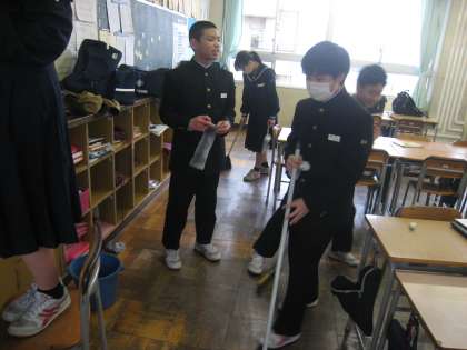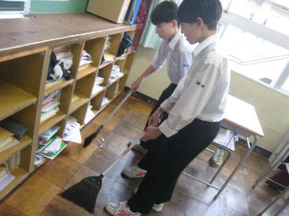 環境委員会、ボランティア委員会合同で放課後に思いやり清掃を行いました。委員とボランティアの生徒で、普段の清掃ではできないところをやります。細かいところまでがんばっていました。