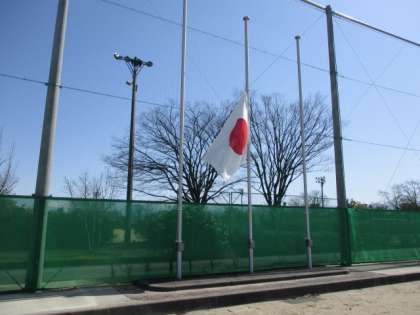 今日で東日本大震災から13年が経ちます。震災のため犠牲になられた方々への哀悼の意を表すため国旗掲揚塔に半旗を掲げました。また、午後2時46分には全校で黙祷を捧げました。