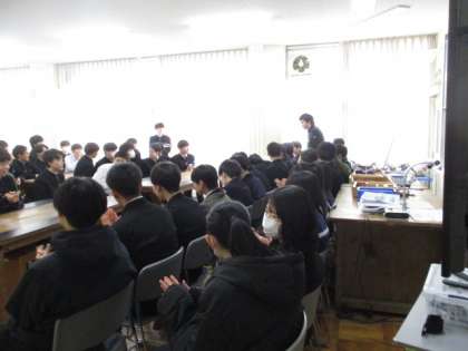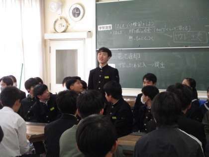 今日の部活動は各部ごとに部活動送別会を行いました。お世話になった3年生の先輩方に1、2年生が感謝の気持ちを伝えます。3年生からは部活動の思い出や後輩たちへの思いを伝えました。写真は陸上競技部の様子です。