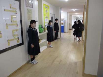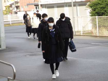 今朝の登校時は曇りになりました。今日は卒業式の予行練習、同窓会入会式等が行われます。本日の下校完了時間は15:30です。