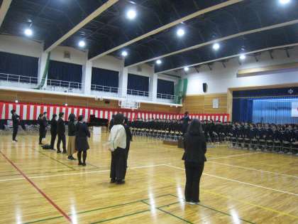いよいよ明日に控えた卒業式の最後の練習を行い、真剣な姿で取り組みました。学年集会では、生徒からお世話になった先生方へ感謝の言葉と歌を送りました。