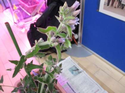 生徒会が育てているブルースターに花が咲きました。生徒は水を替えるなど丁寧に世話をしてくれています。