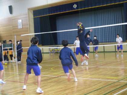 2限、26・27Hの男子の体育の様子です。試合形式でバレーボールをしています。レベルはまだまだ高くはありませんがですが何とかラリーが続くこともありました。