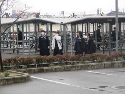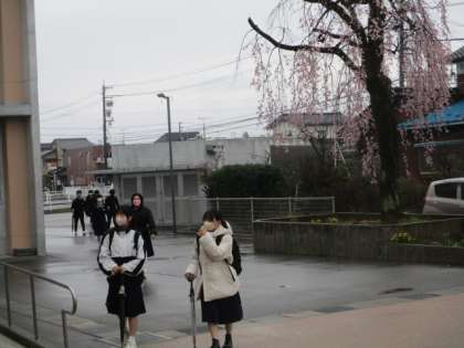 今朝の登校時は小雨になりました。今日は令和6年度1学期始業式を行います。本日の下校完了時間は12:50です。